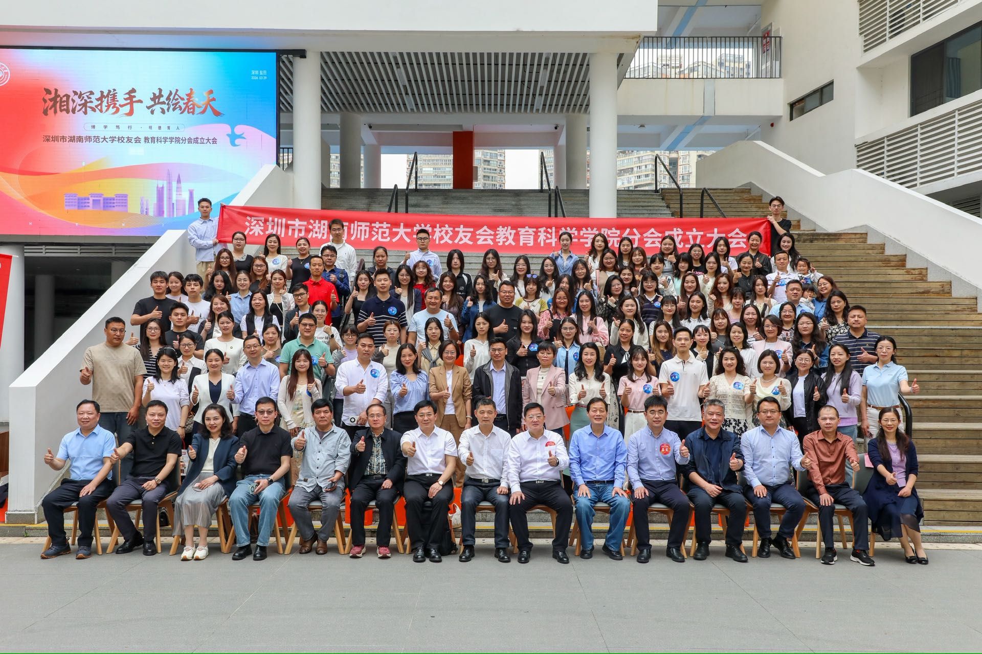 3月29日上午,我校深圳校友会教育科学学院分会成立大会暨基础教育论坛在湖南师范大学附属深圳盐田山海学校举行。会议选举产生校友分会第一届理事会及组织机构,搭建起基础教育领域交流平台。湖南省驻深圳办事处一级巡视员李永东,我校副校长郑贤章,深圳市盐田区教育局副局长叶菲,我校深圳校友会会长田地、执行会长兼秘书长邹寿长等领导嘉宾出席大会,教育科学学院领导班子成员、教师代表及在深校友150余人参会。