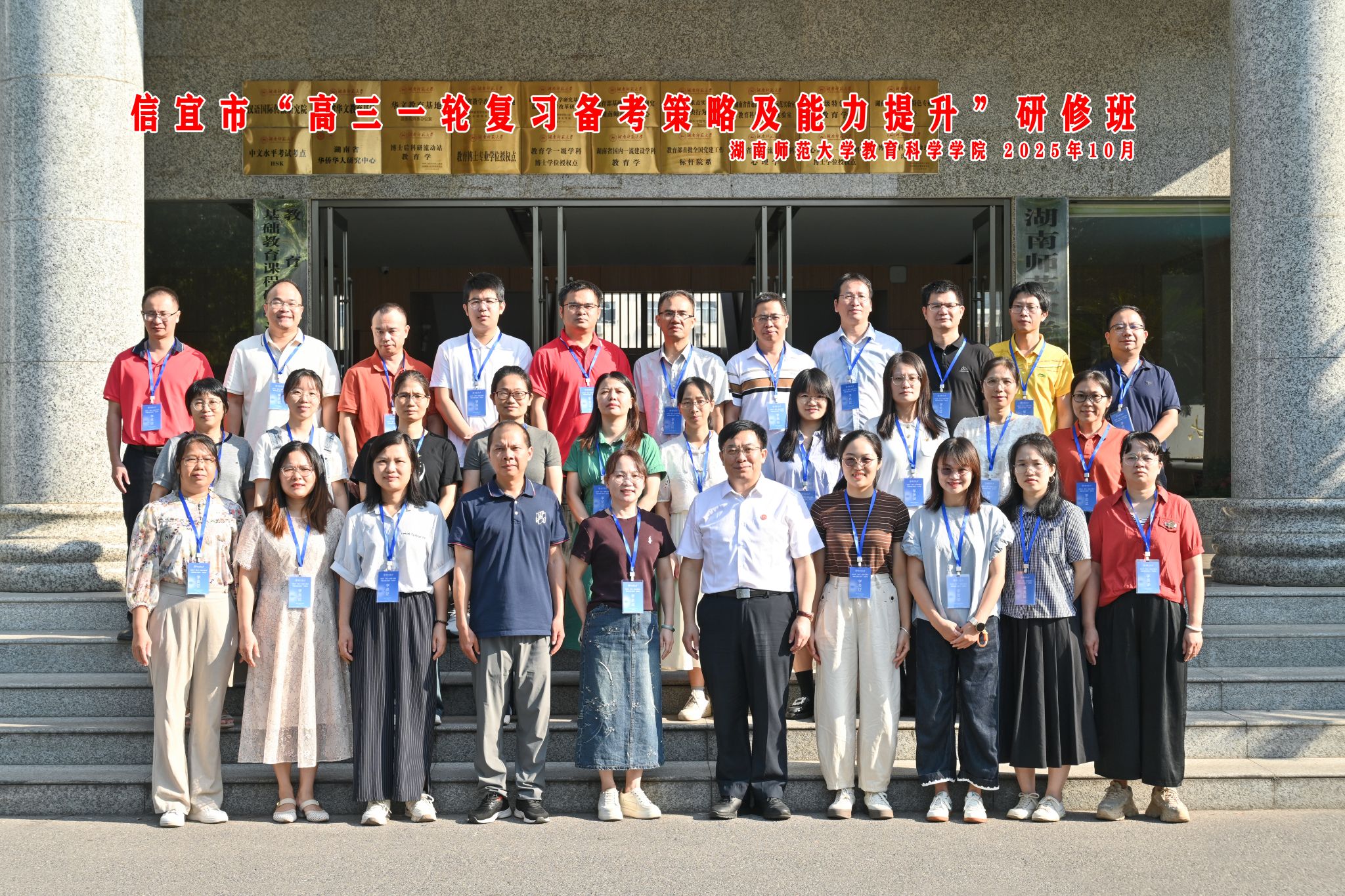 2025年10月10日上午,由湖南师范大学教育科学学院承办的“信宜市高三一轮复习备考策略及能力提升研修班”在学院102报告厅正式开班。信宜市第一中学团委书记李延康、信宜市华侨中学高三级抓级主任、教导处副主任陈秀娟、湖南师范大学教育科学学院党委书记向发意出席开班典礼,典礼由副院长赵亮主持。向发意代表学院致欢迎辞。他向远道而来的信宜市老师们表示热烈欢迎,并指出,基础教育是国家和民族发展的根基,信宜市的老师们长...