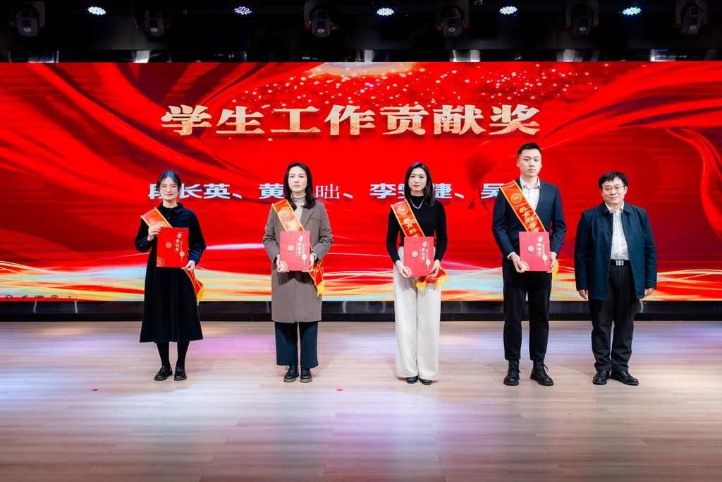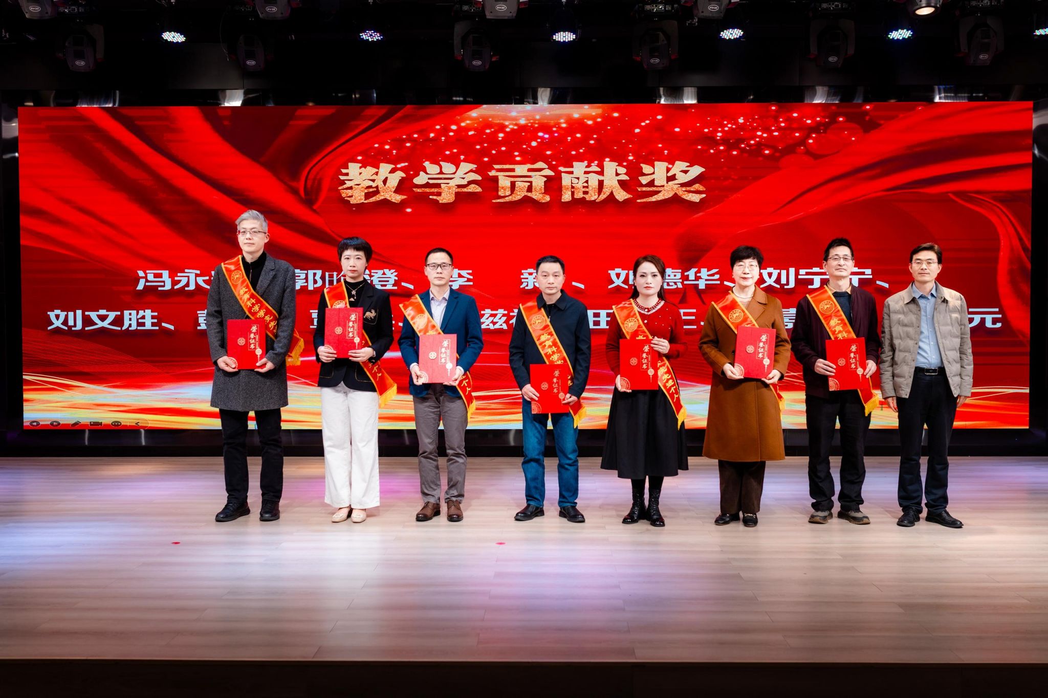 表彰环节成为本次活动的重要亮点。为表彰先进、树立榜样,学院对 2025 年度在人才培养、教学科研、党建管理、学生工作等领域表现突出的教职工进行隆重表彰,先后颁发了八大奖项。蔡荣华等 10 人获 “人才培养奖”,冯永辉等 12 人获 “教学贡献奖”,顾红磊等 10 人获 “科研贡献奖”,李新(女)等 3 人获 “党建贡献奖”,康丹等 6 人获 “管理贡献奖”,郭旭栋等 4 人获 “工会工作贡献奖”,段长英等 4 人获 “学生工作贡献奖”,蔺海沣等 4 人获 “师资建设奖”。与会领导为获奖教师颁奖,现场掌声雷动,充分展现了教科院教职工锐意进取、实干担当的精神风貌。