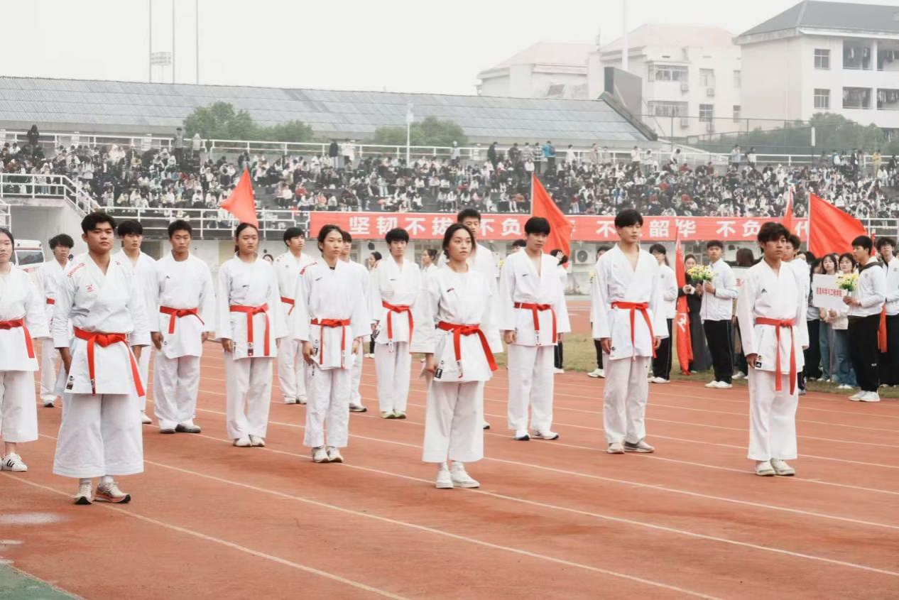 开幕式表演高潮迭起,歌舞表演以嘹亮歌声与灵动舞步抒发青春情怀;空手道动作规范气势刚劲,彰显了拼搏力量;健美啦啦操热情迸发,用整齐队形与昂扬姿态点燃全场氛围;团体太极拳动静相济,以舒展招式与沉稳气韵展现传统文化魅力。一幕幕精彩表演生动诠释了湖师大学子全面发展的综合素养与向阳而生的精神风貌。