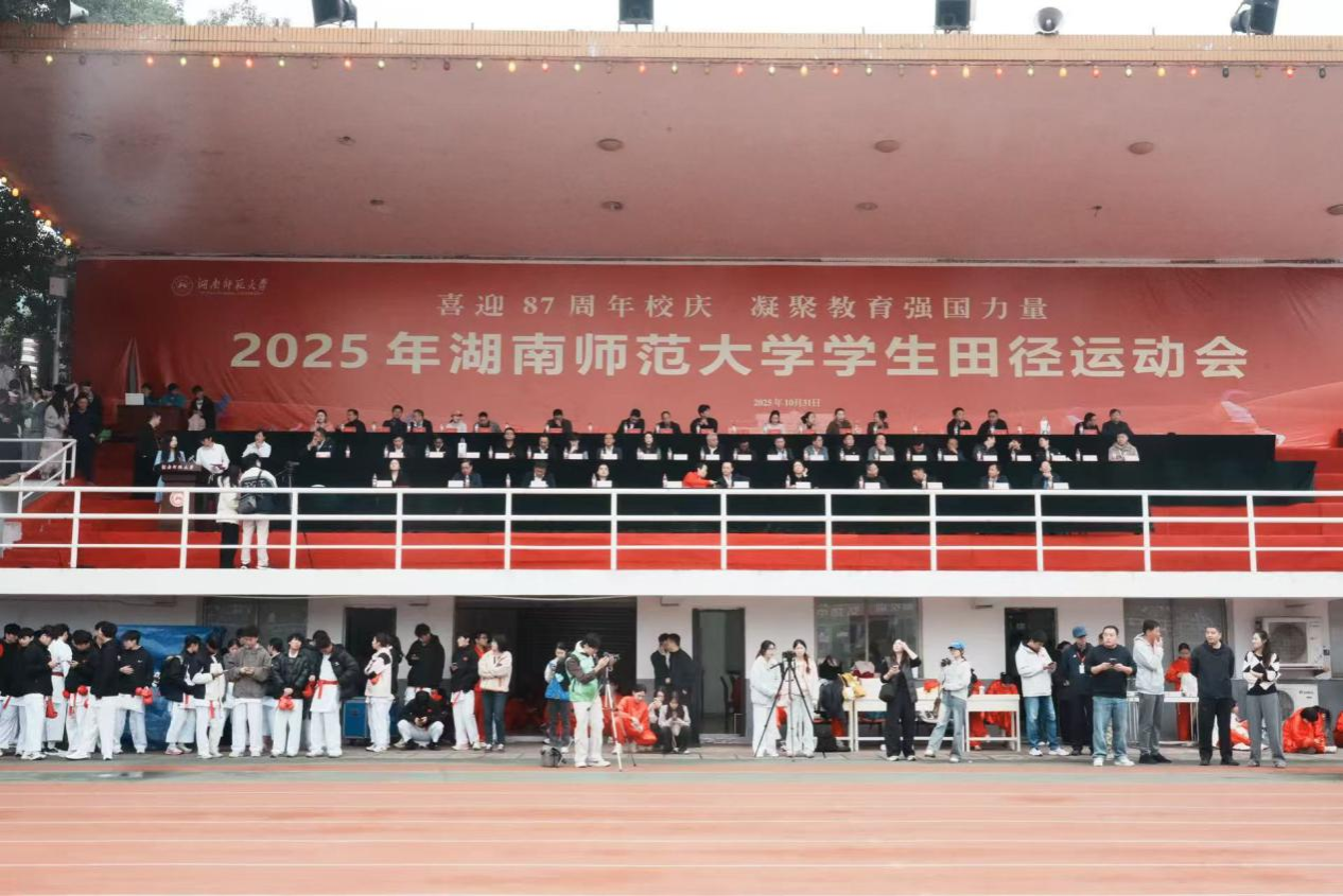 (通讯员 徐靖 刘慧怡)10月31日上午,湖南师范大学2025年学生田径运动会在二里半田径场隆重举办。校长刘仲华、副校长谢资清出席开幕式。教育科学学院(以下简称“教科院”)30名学生作为运动员参与其中。