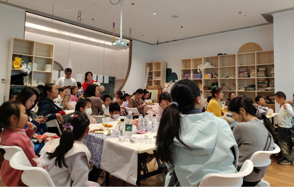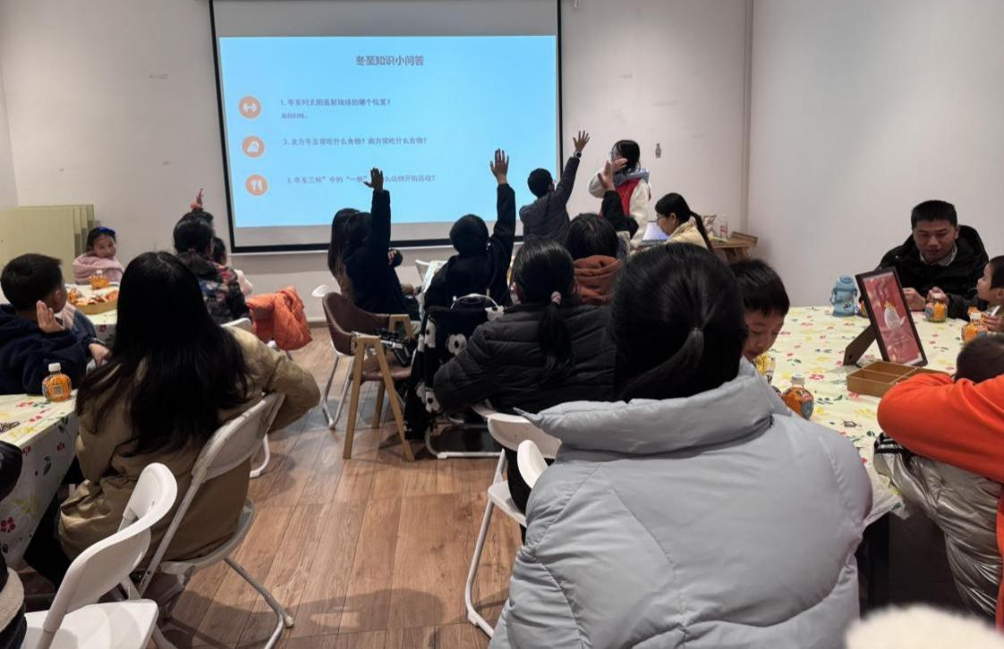 此次系列活动聚焦霜降、立冬、冬至三个节气设计主题课程,每期吸引20组亲子家庭参与。绘本营里,“霜降”场结合《二十四节气旅行绘本霜降》绘本,带领孩子开展霜露自然观察与柿子taco手工制作;“立冬”场依托《立冬腌白菜》绘本讲述北方腌菜传统文化,还组织亲子协作开展饺子手工制作;“冬至”场共读《冬至饺子宴》绘本,讲解昼夜变化规律与“九九消寒图”传统计数方式,亲子合力制作彩色汤圆、填绘消寒图。活动尾声,志愿者为参与儿童颁发“节气小达人”证书,并举行温馨的闭营仪式。