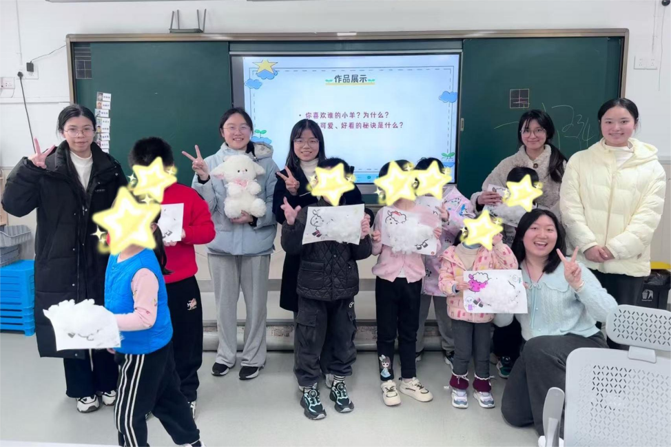 一年级课堂以《小羊的烦恼》为核心,志愿者通过齐唱《你好歌》、“开火车”游戏拉近与孩子距离,引导孩子认识小动物、理解“烦恼”含义,搭配手工创作与作品分享,在温馨氛围中结束课程并约定下周再见。