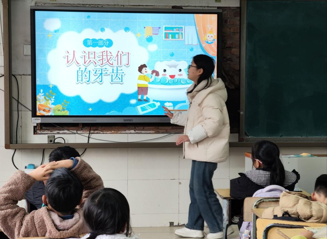 志愿者们走进课堂,以趣味讲解、互动实践相结合的形式,为学生普及口腔健康知识,传授科学护牙方法,助力孩子们掌握实用的口腔护理技能。为确保活动取得实效,志愿者团队在前期做足准备,精心设计教学方案、制作演示幻灯片,还与科教小学相关负责人充分对接,明确活动场地及参与班级,为活动顺利开展筑牢基础。活动现场,志愿者两两分组开展教学,围绕口腔健康的重要性、龋齿形成原因、常见口腔疾病的危害等核心内容展开细致讲解。过程中,志愿者通过趣味问答、现场互动演示的方式,让专业的口腔知识变得生动易懂,充分调动起学生的参与热情,引导孩子们主动学习护牙知识。课堂上,学生们积极举手、踊跃作答,在轻松愉悦的氛围中,熟练掌握了早晚正确刷牙、饭后及时漱口等实用护牙技能。