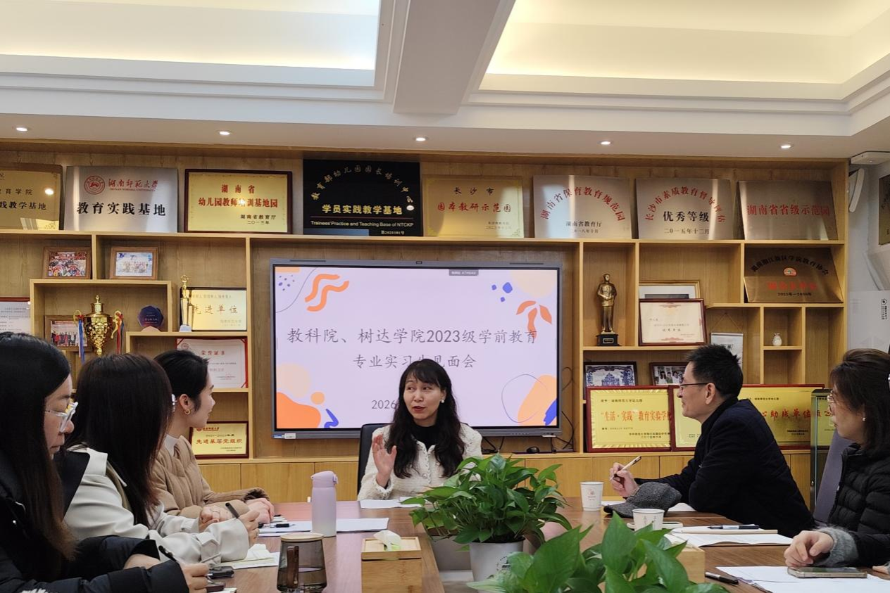 (通讯员 王雨嫣)3月23日上午,由教育科学学院和树达学院学生组成的师大幼儿园实习队,于师大幼儿园会议室召开了实习见面会。师大幼儿园园长徐惠、副园长易乐媛、副园长周艳、副园长曹怡、中大班班主任、实习队带队老师及全体队员参与此次会议。