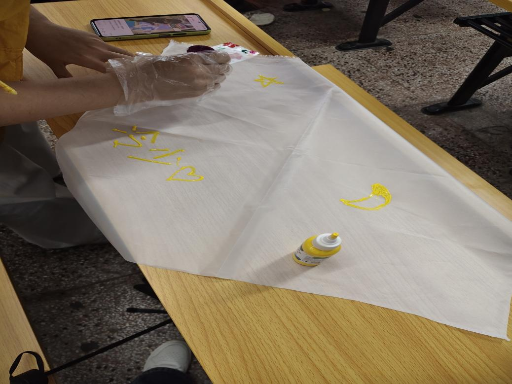 活动前期,社团完成了方案制定与物料筹备,提前备好竹条、绢布、颜料、棉线等制作材料,为活动开展做好准备。活动现场,社团干事先向参与者讲解传统风筝的历史渊源与制作原理,随后示范骨架搭建、面料裱糊、图案绘制等核心步骤。社员们以小组为单位分工协作,有的负责测量裁剪竹条以搭建框架,有的专注于面料整理与裱糊,还有的在绢布上手绘创意图案,在动手实践中熟悉传统风筝的制作工艺。