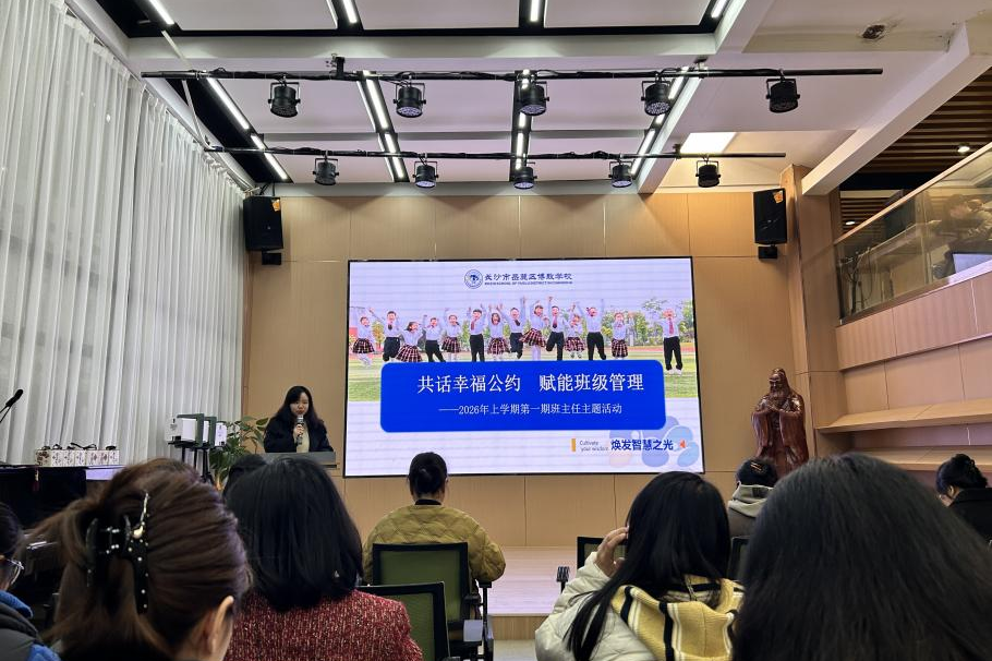 (通讯员 向芷徴 尹偲)3月26日上午,教育科学学院赴长沙市岳麓区博致学校实习队(以下简称“实习队”)全体成员在博致学校焕智学习中心参与了该校本学期第一期班主任主题培训。博致学校副校长胡斌、教育服务中心主任刘子绮及各年级班主任与实习队队员共同参会,围绕“共话幸福公约 赋能班级管理”主题,开启新学期班主任专业成长的第一站。