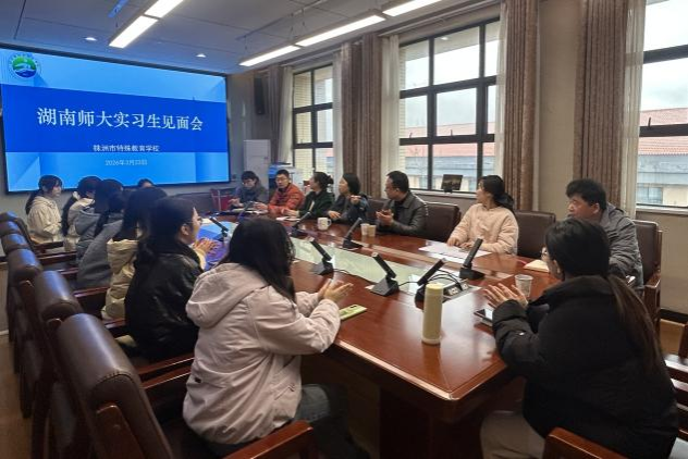 (通讯员 杨洁 彭诗林 李姬)3月25日下午,湖南师范大学教育科学学院2023级特殊教育专业实习队与株洲市特殊教育学校于崇德楼三楼会议室举行见面会。湖南师大特教系主任陈杰,株洲特校校长张明月、副校长王金花及各学部负责人出席,会议由校课程教学中心主任张慧玲主持。