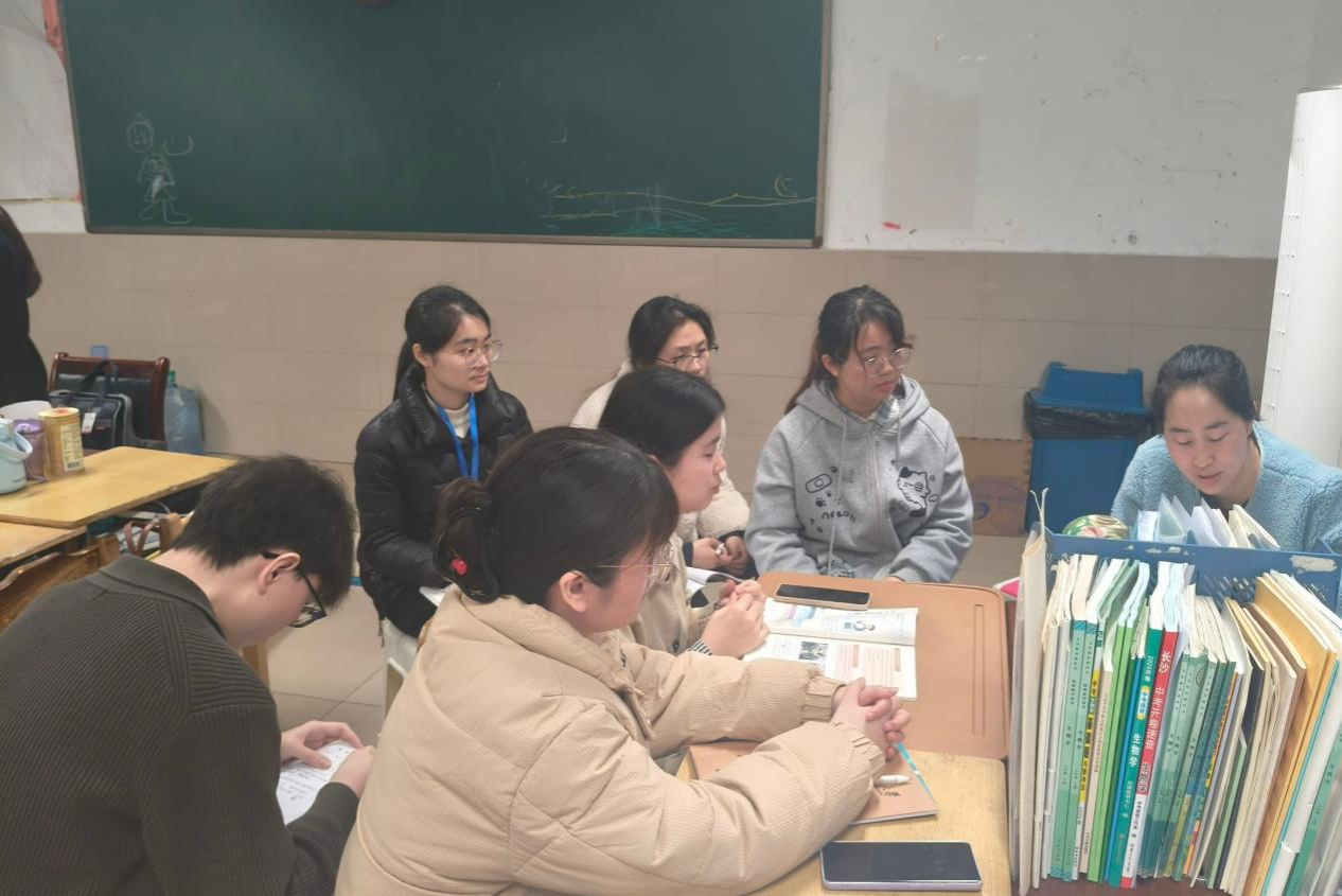 课后,彭珍同实习队员探讨教学改进策略,充分肯定两位实习教师的教学逻辑和课堂掌握度,尤其是知识点的精确度掌握和课程各环节时间安排的精准度把控,同时从活动衔接、素材选取等方面提出了改进建议。