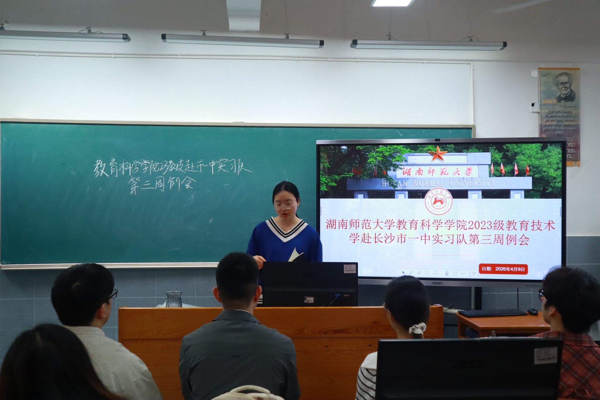 (通讯员 巫刘佳 申娜 李燕玲)4月9日上午,教育科学学院2023级教育技术班赴长沙市一中实习队在科学艺术楼五楼召开第三周工作例会。会议由实习队队长申娜主持,全体实习队员参会。