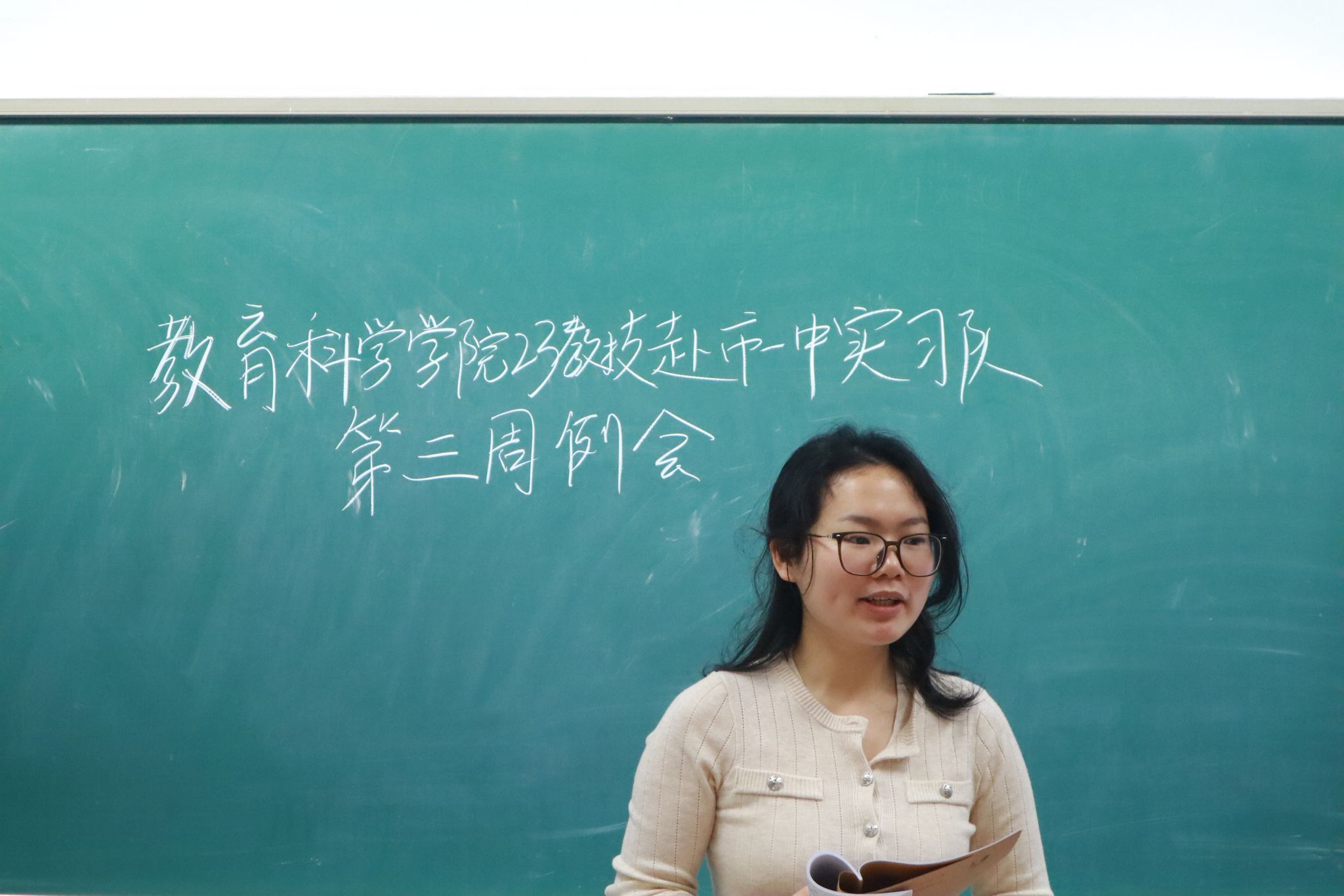 会上,申娜对实习队第二周的整体情况进行了简要总结。她指出,全体队员已完成首次授课,备课、宣传、卫生及考勤等各项工作均有序推进。她要求全体队员进一步规范个人言行。