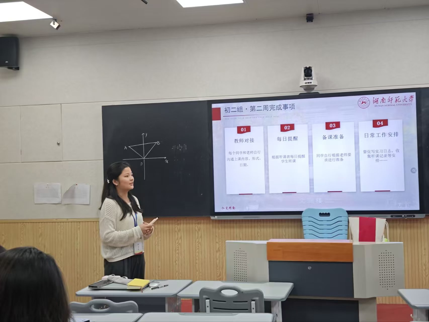 会上,队员们围绕本周教学实践、下周工作安排及个人实习感悟进行集中汇报。大家结合自身授课经历,交流课堂实施情况与实践收获,同时就课堂管理、学生互动、授课节奏、班级学情差异等问题展开分享与探讨。队长杨玉婷对本周整体实习情况进行梳理总结,梳理共性问题并明确后续工作重点。