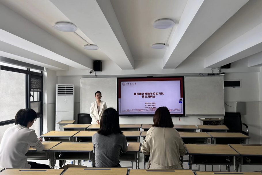 (通讯员黄湘荣 向芷徴)4月10日,教育科学学院赴博致学校实习队在校内召开入校实习第三周例行会议。实习队队员参加会议,会议由队长黄湘荣主持。