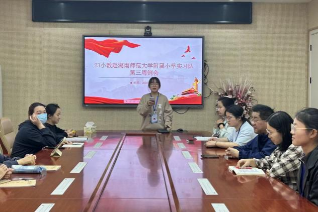 (通讯员 朱晓曼 彭晓宇 刘丽)4月10日下午,教育科学学院(以下简称教科院)赴湖南师范大学附属小学(以下简称师大附小)实习队在师大附小报告厅成功召开成长研习会。会议由实习队队长刘丽、实习队教研组长刘晓莹主持,师大附小指导老师蒋杨玲莅临指导,教科院实习队指导老师覃兵及实习队全体成员参与会议。
