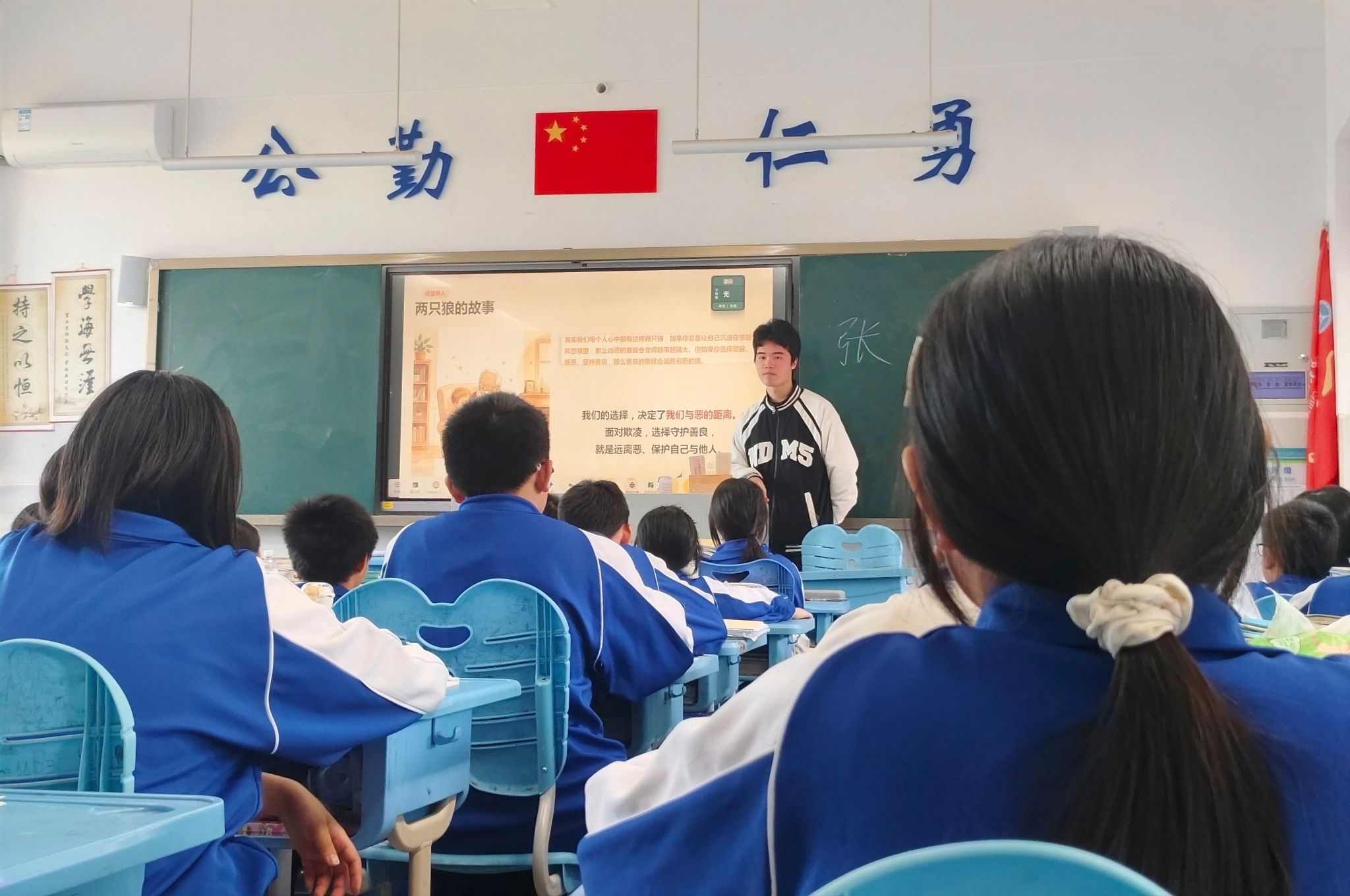 面对真实、动态课堂环境,实习教师完成了教学与课堂秩序维护工作。“编织友谊丝带”课堂以丝带为载体,加入游戏、情境扮演等活动,帮助学生掌握热情用心的回应方式,促进同伴交往;“与非黑即白说‘不’”课堂将抽象的晕轮效应理论落地为内容丰富、形式有趣的教学实践,学生主动参与课堂问答,课堂氛围良好;“我们与恶的距离”课堂剖析校园霸凌生态,学生在理论与案例中认识霸凌危害、学会自我保护与正确求助。