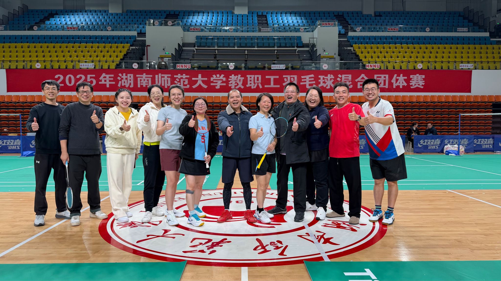 11月21日至23日,“2025年湖南师范大学教职工羽毛球混合团体赛”在江湾体育馆隆重举行。教育科学学院羽毛球队一路过关斩将,最终斩获第五名的优异成绩,用拼搏与汗水诠释了团队力量!