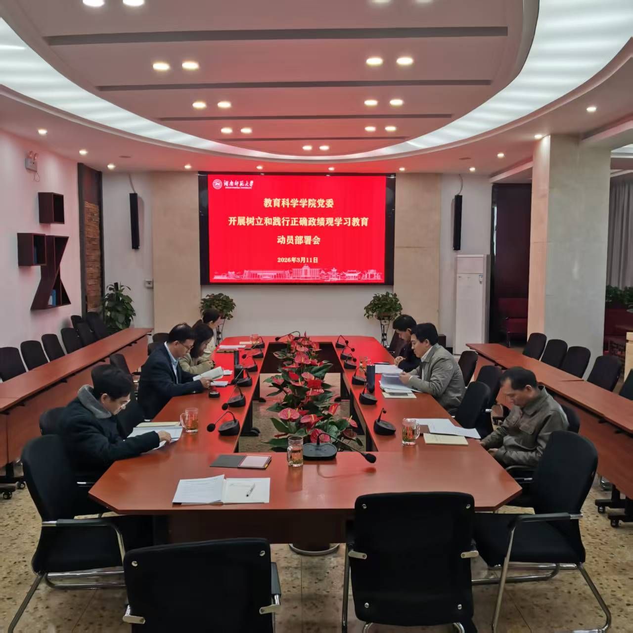 3月11日上午,学院召开树立和践行正确政绩观学习教育动员部署会,对学习教育相关工作进行研究部署。党委书记向发意主持会议,全体院党委班子成员参加会议。