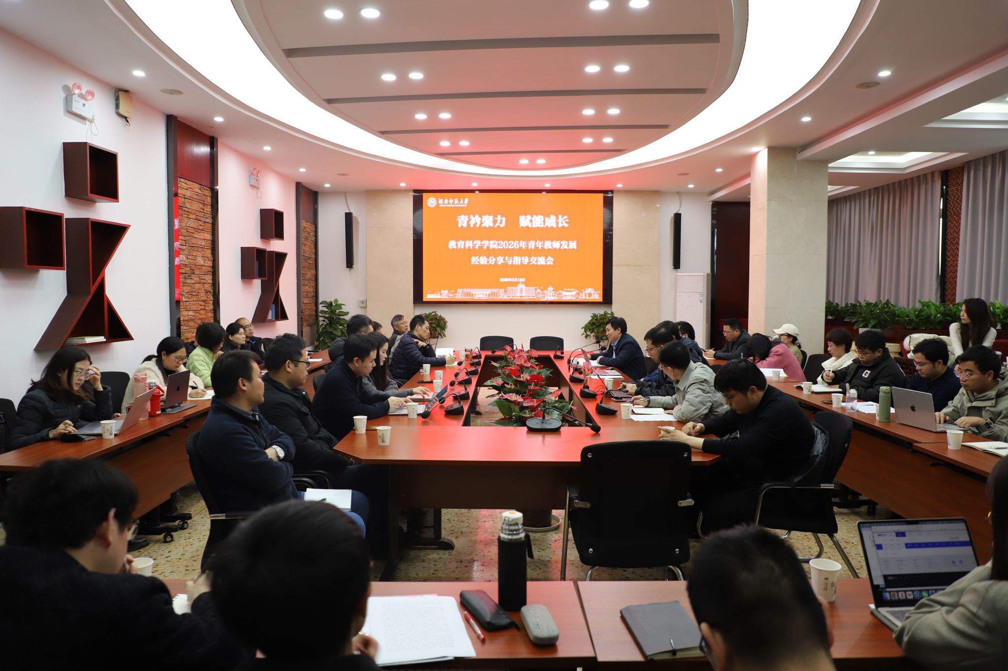 (通讯员 徐靖 吕海霞)为深入落实教育、科技、人才一体化发展战略,加强青年教师队伍建设,搭建学习交流、互鉴共进的成长平台,助力学院高质量发展,3月19日下午,教育科学学院在七楼会议室举办了“青衿聚力·赋能成长———2026年青年教师发展经验分享与指导交流会”。会议特邀国家级高层次人才、我校文学院副院长(主持工作)吕双伟教授做青年教师成长及人才项目申报经验分享,副院长容中逵主持会议。党委书记向发意会议致辞,院长刘铁芳、副院长丁道群及学院全体青年教师参加此次交流会。